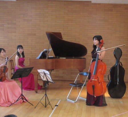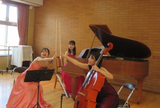 講師の谷口 沙和先生(ヴァイオリン)、長谷川 寧々先生(チェロ)、宮脇 彩永先生(ピアノ)ありがとうございました。